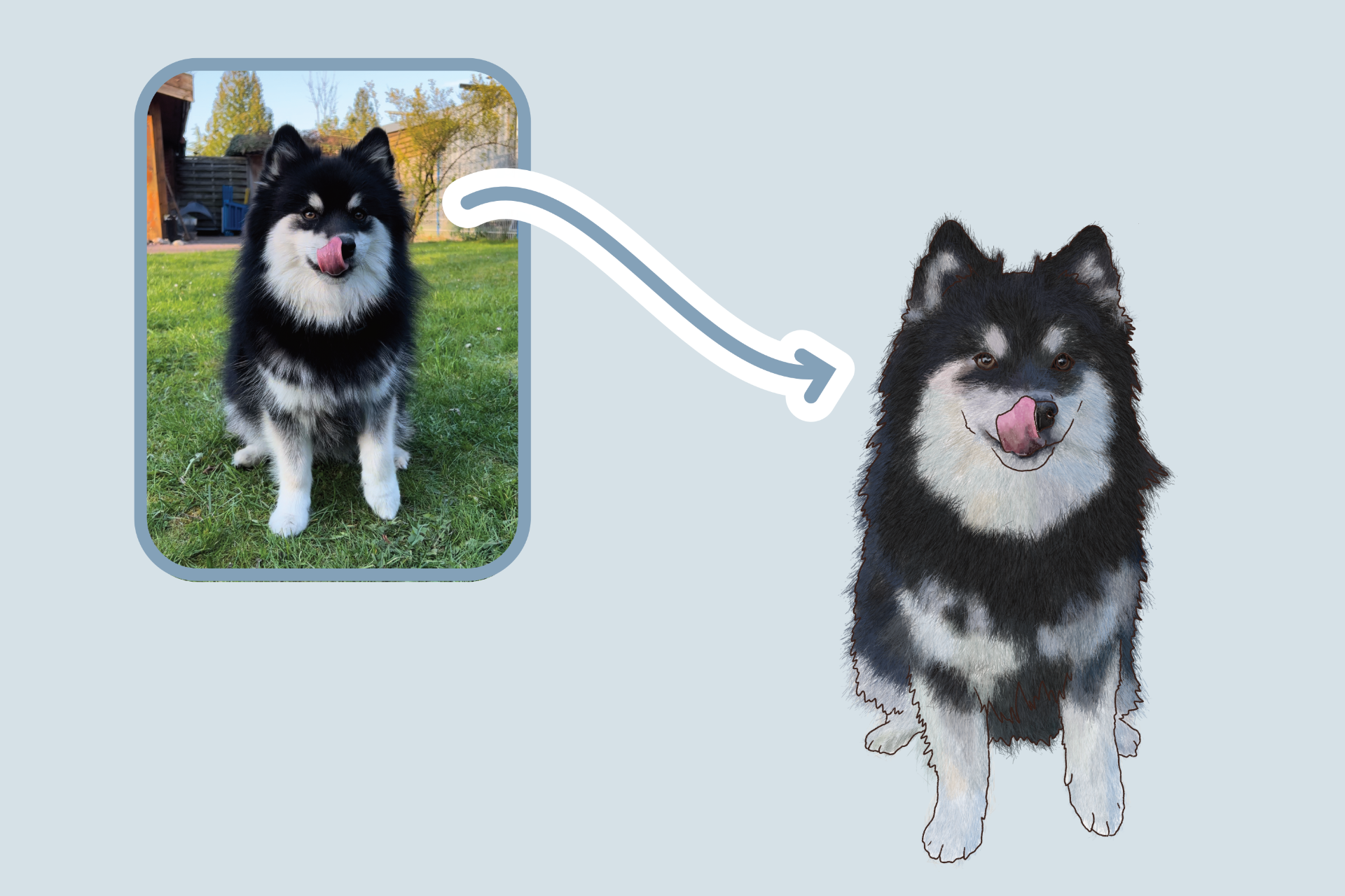 sind Illustrationen deines Vierbeiners, die ich anhand von Fotos deines Lieblings 📸 zeichne. Damit passe ich dann die Materialien an.